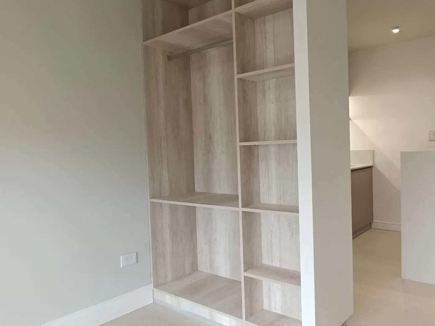 Artefactos eléctricos. Placar hacia la zona de dormitorio y espacio de guardado en cocina.